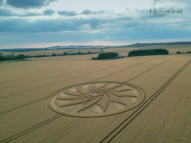 【麥田圈】2018-7-21 英國威爾特郡如12瓣紙風車的麥田圈